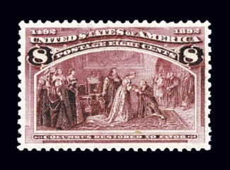 73 nh 236 image#236, 8c Columbian, unusually well centered and margins, deep vibrant color and impression, o.g., n.h., extremely fine. (Image) $200.00