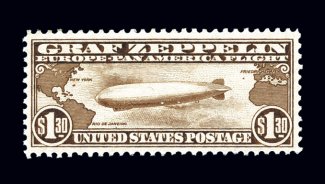 129 nh C13-15 image#C13-15, 65c-$2.60 Graf Zeppelins cplt., well centered, fresh colors, o.g., n.h., typical natural gum bends and skips, very fine. (imagea) (imageb) (Image) $2,525.00