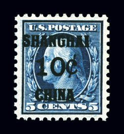 135 nh K5 image#K5, 10c on 5c Blue, extraordinarily well centered within wide margins, deep vibrant color and a razor-sharp impression on bright white paper, unblemished o.g., n.h., extremely fine gem; an especially attractive example; 2002 PF certificate. (Image) $160.00