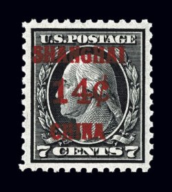 136 nh K7 image#K7, 14c on 7c Black, exceptionally well centered and margined, fresh color and paper, pristine o.g., n.h., extremely fine; 2006 PSE certificate (VF-XF 85; SMQ $320.00). (Image) $210.00