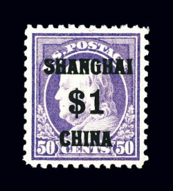 139 nh K15 image#K15, $1.00 on 50c Light violet, excellent centering within balanced margins, lovely bright color and a well incised impression on fresh white paper, pristine o.g., n.h., extremely fine; premium quality never hinged examples of this are quite rare and seldom offered; 2002 PF certificate. (Image) $1,300.00