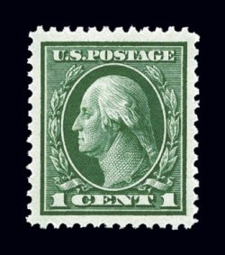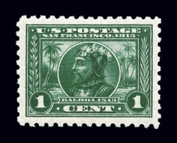 488 nh 401 image#401, 1c Panama-Pacific, perf. 10, extraordinarily well centered amid lavishly large margins, deep rich color and a prooflike impression, o.g., n.h., extremely fine gem; 1998 PF certificate and a 2006 PSE certificate (XF 90 Jumbo; SMQ $145.00 as 90 and $560.00 as 95); ex-Pietsch. (Image) $60.00