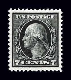 498 nh 407 image#407, 7c Black, a most impressive mint single, possessing the largest and most perfectly balanced margins we have ever seen on this surprisingly difficult value, additionally this stamp boasts an incredible overall freshness, with truly prooflike color and impression on brilliantly fresh paper, o.g., n.h., extremely fine; actually a very scarce and elusive stamp in this gem condition; 1999 PF certificate (sheet selvage subsequently removed) and a 2006 PSE certificate (XF-Superb 95; SMQ $1,300.00). (Image) $175.00