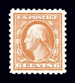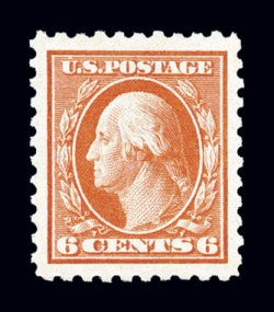 520 nh 429 image#429, 6c Red orange, an incomparable jumbo-margined mint example, possessing margins of immense size and being absolutely perfectly centered within them, gorgeous vibrant color and a razor-sharp impression on bright paper, immaculate o.g., n.h., extremely fine; a superb stamp of breathtaking proportions; 2006 PSE certificate (XF-Superb 95 Jumbo; SMQ $910.00 as 95 and $2,100.00 as 98); only one stamp ranks higher in the PSE population report (see the previous lot). (Image) $105.00