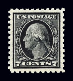 521 nh 430 image#430, 7c Black, a sensational quality mint example of one of the most difficult values of the series to find in any kind of premium quality, as this impressive gem features mathematically precise centering amid exceptionally large margins, plus its color is especially strong and its impression razor sharp, even and intact perforations all around, pristine o.g., n.h., extremely fine; a superb gem; 2003 PF certificate and a 2006 PSE certificate (Superb 98; SMQ $3,350.00); this is one of only two Scott #430's to have been assigned the lofty grade of 98 by the PSE, the highest grade awarded. (Image) $210.00
