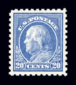 529 nh 438 image#438, 20c Ultramarine, a superlative mint example of this difficult value, boasting absolutely flawless centering amid lavishly large margins, gorgeous rich color and a strong impression on immaculate paper, unusually even and intact perforations (a seldom seen occurrence on perf. 10 issues), unblemished o.g., n.h., a superb gem in the finest possible quality; 2005 PF certificate and a 2006 PSE certificate (Superb 98; SMQ $5,800.00); this remarkable stamp has been awarded the highest grade that has been assigned by the PSE to a Scott #438. (Image) $475.00