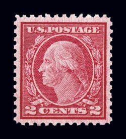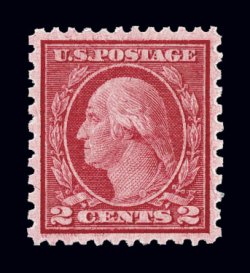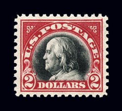 634 nh 547a image#547a, $2.00 Lake and black, a stunning mint single of this popular stamp, possessing margins of extraordinary size and being incredibly well centered within them, strikingly intense colors and prooflike impressions on marvelously fresh paper, unblemished o.g., n.h., an extremely fine gem; a stamp with tremendous eye appeal; 1989 and 1996 PF certificates, as well as a 2006 PSE certificate (XF-Superb 95; SMQ $1,150.00); the highest grade yet awarded to a Scott #547a, and the sole example in this lofty grade. (Image) $500.00
