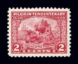 636 nh 549 image#549, 2c Pilgrim Tercentenary, impressive jumbo-margined mint single, featuring incredibly large and marvelously well balanced margins, radiant color, o.g., n.h., extremely fine; a striking gem; 2006 PSE certificate (XF-Superb 95 Jumbo; SMQ $105.00 as 95 and $290.00 as 98). (Image) $14.00