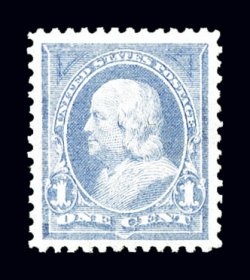 334 nh 246 image#246, 1c Ultramarine, striking mint single, featuring extravagantly large and wonderfully well balanced margins all around, bright pastel shade, pristine o.g., n.h., extremely fine; 1997 and 2006 PF certificates (the latter graded XF 90; SMQ $335.00). (Image) $90.00