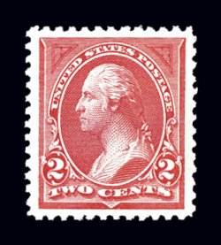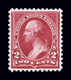 337 nh 249 image#249, 2c Carmine lake, Ty. I, a gem mint example of this scarce and challenging stamp, possessing virtually perfect centering, with absolutely radiant color in the deepest shade we have ever seen, plus its impression is razor sharp on pristine paper, o.g., n.h., extremely fine; 1996 PF certificate and a 2006 PSE certificate (VF-XF 85 - an inexplicably conservative grade for this select copy; SMQ $760.00). (Image) $525.00