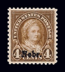 701 nh 673 image#673, 4c "Nebr." ovpt., an incomparable mint single, boasting extraordinarily large and perfectly balanced margins all around, prooflike color and impression, immaculate o.g., n.h., extremely fine gem; the epitome of a superb stamp; 2006 PSE certificate (Superb 98; SMQ $670.00); this impressive stamp is the sole example to have been graded Superb 98 by the PSE, the highest grade awarded. (Image) $35.00