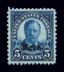 702 nh 674 image#674, 5c "Nebr." ovpt., an impressively margined mint single, with uncommonly large and wonderfully well balanced margins all around, deep luxuriant color, o.g., n.h., an extremely fine gem; 1998 PF certificate and a 2006 PSE certificate (XF 90 Jumbo; SMQ $80.00 as 90 and $245.00 as 95). (Image) $32.50