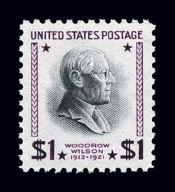 711 nh 832b image#832b, $1.00 Purple and black, watermarked "USIR" in error, highly select mint example, with unusually large and well balanced margins all around, pristine o.g., n.h., extremely fine; not often seen in this gem condition; 1997 PF certificate and a 2006 PSE certificate (XF-Superb 95 Jumbo; SMQ $310.00); the highest grade awarded to date for this popular error stamp. (Image) $175.00
