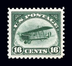 715 nh C2 image#C2, 16c Green, beautifully centered, with large margins all around, deep luxuriant color, o.g., n.h., guide line on left perforations neatly filed off, extremely fine; clear 1999 PF certificate for a vertical pair, this being the bottom stamp, as well as a 2006 PSE certificate for the single (XF 90; SMQ $225.00). (Image) $150.00
