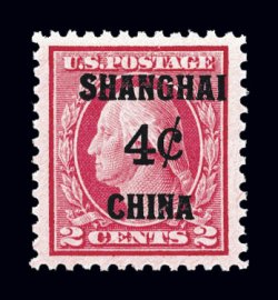 781 nh K2 image#K2, 4c on 2c Rose, a most remarkable quality mint example, possessing the finest centering and margins we have ever seen on this value, being precisely centered amid extravagantly large margins, plus its color is particularly radiant and its impression strong on pristine paper, even its perforations are uniformly long and intact, pristine o.g., n.h., a superb stamp for the collector seeking to assemble the finest possible set of Shanghai overprints; 1994 PF certificate for the plate block from which this stamp was take, as well as a 2006 PSE certificate as a single (XF-Superb 95; SMQ $510.00); this is the highest PSE grade awarded to a Scott #K2. (Image) $60.00