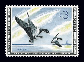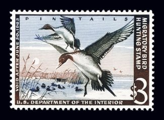 851 nh RW30 image#RW30, 1963 $3.00 Multicolored, extraordinarily well centered, large margins, bright and fresh, o.g., n.h., extremely fine gem; 2006 PSE certificate (XF-Superb 95; SMQ $200.00). (Image) $110.00