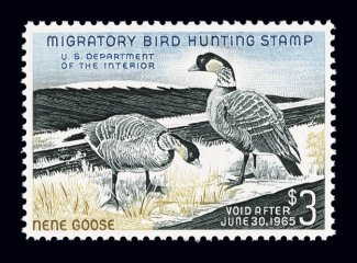 853 nh RW32 image#RW32, 1965 $3.00 Multicolored, perfectly centered within large margins, o.g., n.h., an extremely fine gem; 2006 PSE certificate (XF-Superb 95; SMQ $200.00). (Image) $105.00