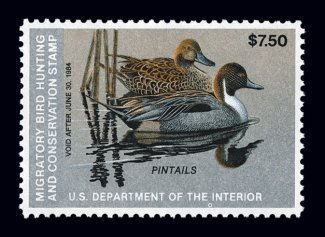 860 nh RW37-51 image#RW37-51, 1970-84 Hunting Permit stamps, the select balance of Dr. Killien's "duck" stamps, fifteen different, each selected for its exceptional centering, margins and overall freshness, o.g., n.h., very fine-extremely fine; #RW37 accompanied by a 2006 PSE certificate (VF-XF 85). (Image) $313.00