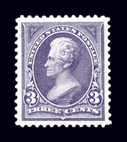 358 nh 268 image#268, 3c Purple, fabulously well centered within margins that are considerably larger than typically found, gloriously rich color and a deeply etched impression on brilliantly fresh paper, o.g., n.h., extremely fine; a pristine gem; a terribly difficult value to find in such outstanding never hinged condition; 2003 PF certificate and a 2006 PSE certificate (XF-Superb 95; SMQ $800.00); one of two never hinged stamps graded XF-Superb 95 by the PSE, the highest graded assigned to date for any mint example of this value. (Image) $110.00