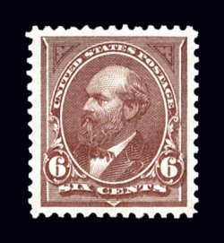 345 nh 256 image#256, 6c Dull brown, a most extraordinary mint example, being in a condition which few other existing copies can rival, boasting lavishly large margins all around and being incredibly well centered within them, gloriously rich color and impression on uncommonly bright paper, even its perforations are unusually intact and full, o.g., n.h., an extremely fine gem in every regard; 2002 PF certificate, as well as 2002 and 2005 PSE certificates (the latter with XF-Superb 95 grade; SMQ $3,550.00); ex-Cohen. (Image) $500.00