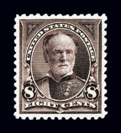 346 nh 257 image#257, 8c Violet brown, pristine mint single, deep luxuriant color and a crisp detailed impression on wonderfully fresh paper, large well balanced margins all around, immaculate o.g., n.h., extremely fine; 1993 PF certificate and a 2006 PSE certificate (XF 90; SMQ $1,200.00). (Image) $450.00
