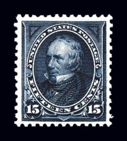 348 nh 259 image#259, 15c Dark blue, an incredibly choice and handsome mint example, possessing outstanding centering amid extravagantly large margins, strikingly intense color and a deeply incised impression on brilliantly fresh paper, pristine o.g., n.h., extremely fine; a rare and desirable stamp in this premium never hinged condition; 1993 PF certificate for a block of four, this being the bottom right stamp, and a 2005 PSE certificate as a single (XF 90; SMQ $2,900.00); it is worthwhile to note that during the past twelve years or so this is the finest quality mint never hinged example of this stamp Dr. Killien could find offered at auction, clearly it was appreciated by others as well, as it realized $4,600.00 (including premium) when he acquired it in our December 2005 Premier Sale; ex-Jarrett. (Image) $975.00
