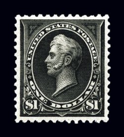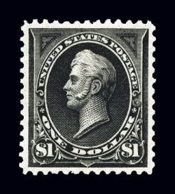 352 og 261A image#261A, $1.00 Black, Ty. II, a marvelously choice mint example of this scarce and difficult stamp, possessing near perfect centering amid unusually wide margins, truly prooflike color and impression which contrast wonderfully with its bright white paper, especially clean full o.g. that has been only very lightly hinged, extremely fine; highly desirable and elusive in this gem condition; 2003 and 2006 PF certificates (the latter graded XF 90; SMQ $4,800.00). (Image) $2,400.00