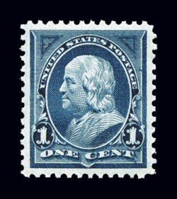 354 nh 264 image#264, 1c Blue, a "perfect" mint single, flawlessly centered within huge margins, gorgeous intense color, immaculate o.g., n.h., a superb gem for the perfectionist; 2001 PF certificate for a block of twelve from which this stamp was taken, as well as a 2006 PSE certificate as a single (Superb 98; SMQ $550.00); this is one of only four stamps graded 98 by the PSE, the highest grade assigned to date. (Image) $17.50