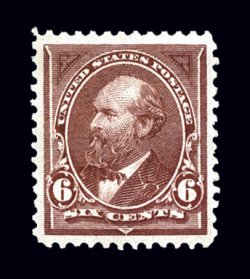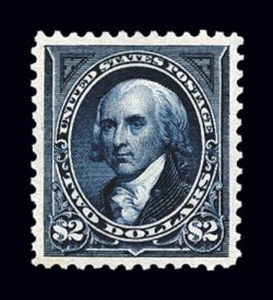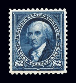 367 og 277a image#277a, $2.00 Dark blue, a stunning quality mint example which possesses several exceptional physical attributes, including flawless centering amid huge margins which are most unusual on this value, just as impressive is this stamp's incredibly intense color and its impression that could not be more prooflike on brilliantly fresh paper, immaculate o.g. with just the barest trace of hinging, extremely fine gem; an absolutely superb stamp in the finest possible condition; 1998 PF certificate and a 2006 PSE certificate (Superb 98; SMQ $6,050.00); this is the sole example of a mint Two Dollar Watermarked Bureau issue, whether in the Bright blue shade or Dark blue shade, to have been awarded the impressive Superb 98 grade by the PSE. (Image) $1,200.00