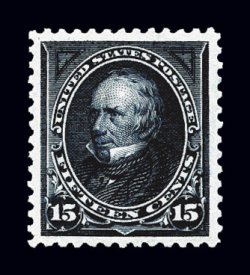 363 nh 274 image#274, 15c Dark blue, superlative mint example, incredibly well centered amid margins that are considerably larger than typically found, additionally this impressive stamp features intensely rich color and a well incised impression on bright crisp paper, unblemished o.g. without a single gum bend or skip, n.h., an extremely fine gem for the finest collection; 2001 PF and PSE certificates, as well as a 2006 PSE certificate (XF-Superb 95; SMQ $4,650.00); this is the sole never hinged example having been assigned an XF-Superb 95 grade by the PSE, with only one other grading higher (100); ex-"Connoisseur's Collection". (Image) $700.00