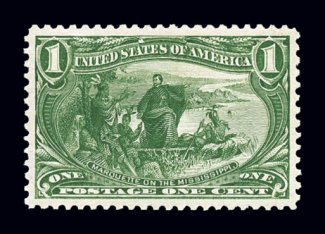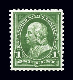 369 nh 279 image#279, 1c Deep green, brilliantly fresh, rich luxuriant color and a strong impression, wonderfully well centered, pristine o.g., n.h., extremely fine; 2006 PSE certificate (VF-XF 85; SMQ $60.00). (Image) $22.00