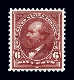 374 nh 282 image#282, 6c Lake, a flawlessly centered mint example of this challenging value, with large well balanced margins all around, gorgeous intense color and impression on brilliantly fresh paper, full perfectly even perforations, pristine o.g., n.h., an extremely fine gem in every regard; 1992 PF certificate and a 2006 PSE certificate (XF-Superb 95; SMQ $1,000.00); one of only four stamps having been graded XF-Superb 95 in the PSE population report, this being highest grade assigned to this stamp; ex-Morris. (Image) $140.00