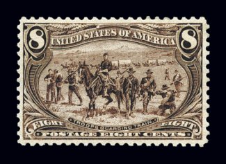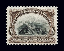 381 og 289 image#289, 8c Trans-Mississippi, unusually well centered for this always difficult stamp, deep rich color and a razor-sharp impression, o.g., barest suggestion of a hinge mark, extremely fine and quite choice; 1984 and 1991 (never hinged by omission) PF certificates, as well as a 2006 PSE certificate (VF-XF 85; SMQ $245.00). (Image) $200.00