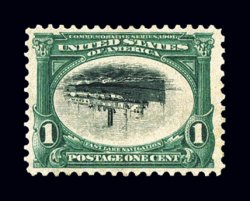 386 nh 294 image#294, 1c Pan-American, brilliantly fresh and crisp, exceptionally well centered, strong rich colors, o.g., n.h., extremely fine; 2006 PSE certificate (XF 90; SMQ $120.00). (Image) $45.00