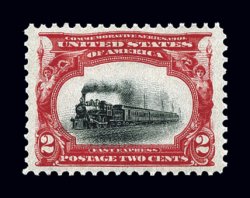 385 og 293 image#293, $2.00 Trans-Mississippi, an extraordinarily choice mint example of this notoriously difficult commemorative, being among the finest quality examples we have offered in quite some time, possessing margins that are much larger than typically encountered (as most are found very tightly margined) and being nearly perfectly centered within them, strikingly rich luxuriant color which is wonderfully contrasted by its bright white paper, full clean o.g., lightly hinged, extremely fine; an exceptional original gum Two Dollar Trans-Mississippi; 1992 PF certificate and a 2006 PSE certificate (XF 90; SMQ $3,100.00); ex-Billington. (Image) $2,250.00