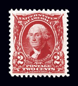395 nh 301 image#301, 2c Carmine, incredibly well centered within especially large margins, radiant color and a strong impression on bright paper, pristine o.g., n.h., extremely fine and exceptionally choice; 1996 PF certificate and a 2006 PSE certificate (XF-Superb 95; SMQ $445.00). (Image) $35.00