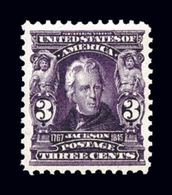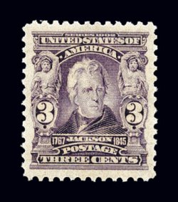 396 nh 302 image#302, 3c Bright violet, a fabulous quality mint example, boasting margins of enormous size and being, quite remarkably, perfectly centered within them, bright color and a highly detailed impression, immaculate o.g. without a single gum bend or skip, n.h., superb; a stunning gem that possesses the finest centering and margins possible on this value; 1983 PF certificate and a 2006 PSE certificate (Superb 98 Jumbo; SMQ $2,550.00 as a 98); this stamp is one of only two stamps graded Superb 98 Jumbo by the PSE, the highest grade awarded to any example of Scott #302. (Image) $125.00