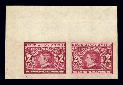 456 nh 371 image#371, 2c Alaska-Yukon, imperforate, top left corner sheet-margin horizontal pair, possessing absolutely gigantic margins all around, deep rich color, o.g., n.h., superb; an eye-arresting gem mint pair; 2006 PSE certificate; ex-Floyd. (Image) $85.00