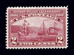 457 nh 372 image#372, 2c Hudson-Fulton, beautifully centered within extravagantly large margins which are most uncharacteristic of this stamp, radiant color, immaculate o.g. without a single gum bend or skip, n.h., extremely fine gem; 2006 PSE certificate (XF-Superb 95; SMQ $160.00). (Image) $24.00