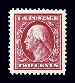 460 nh 375 image#375, 2c Carmine, flawlessly centered within truly massive jumbo margins, the likes of which we have never before encountered on this stamp, intense "fiery" color and a strong detailed impression, pristine o.g., n.h., simply superb; the perfect companion stamp to the previous lot; 1996 PF certificate and a 2006 PSE certificate (Superb 98 Jumbo; SMQ $425.00 as 98); the highest grade awarded to any Scott #375 and the sole example to have been designated as such. (Image) $15.00