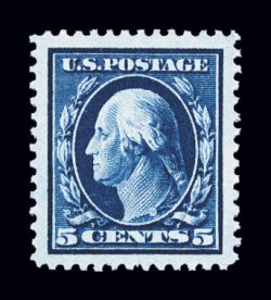 465 nh 378 image#378, 5c Blue, a phenomenal mint example that is sheer perfection, being the beneficiary of the largest margins we have ever seen on this value from the perforated 12 Washington-Franklin series, with mathematically perfect centering amid these immense margins, contributing further to its overall appeal is its magnificently intense color, o.g., n.h., a superb gem for the most meticulous collector; 1991 PF certificate and a 2006 PSE certificate (Superb 98 Jumbo; SMQ $1,450.00 as 98); not only is the highest graded Scott #378 in the PSE population report, it is also the sole example to have been given this remarkable grade; ex-Morris. (Image) $67.50