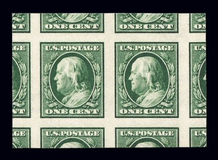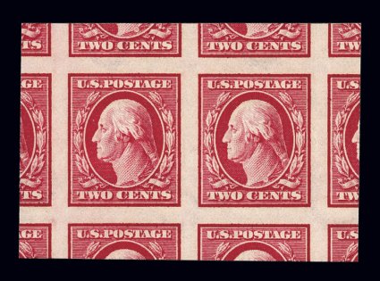 471 nh 383-84 image#383-84, 1c Green and 2c Carmine imperforates, a beautifully matched set of horizontal pairs in the "ultimate" quality, each having been cut from the sheet so that enormous equal portions of the ten adjoining stamps appear all around each pair, both brilliantly fresh and with intense colors, pristine o.g., n.h., superb. (imagea) (Image) $30.00