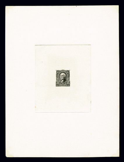 1352 E 301-E image#301-E 2c Washington, photographic essay of unaccepted design, image is stamp-size official sepia-tone photo directly on photo-sensitive paper measuring 46x49mm, another essay with the profile vignette as in the earlier 1894 Bureau issue, but this with the frame as adopted for this value, again with small pinholes around the design apparently from a divider used for measurement purposes, testifying to its official status, very fine; R.O. Smith, designer; ex-"Cheshire". (Image) Est. 300-400