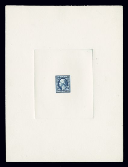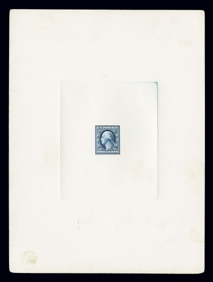 1353 P 300P1-13P1 image#300P1-13P1, 1c-$5.00 1902-03 Regular issue, large die proofs on India complete, a magnificent matched set of large die proofs, each die sunk on full sized cards measuring approximately 147x198mm, all are in exceptionally clean condition, lacking the spots, blemishes and toning that are found on large die proofs of this era, only a few mounting marks or hinge remnants separate this set from perfection, a set that possesses tremendous eye appeal, extremely fine; our records show that there are believed to be only two complete sets of large die proofs on India in public hands (plus the set of F.D. Roosevelt proofs on wove), one is the set of approved die proofs that was sold in Shreves Philatelic Galleries' 2002 sale of the Roger S. Brody collection, realizing a total of $33,000.00 (including premium), and this set, which is actually the better condition set, lacking the flaws of having been bound and removed from an album and the faults that were present to a few values; a lovely rare set in the finest condition available; R.O. Smith, designer; G.F.C. Smillie, vignette engraver of all values except 5c, 10c, 13c, 15c and $1.00; M.W. Baldwin, vignette engraver of the those values; control numbers in order of denomination 348932, 348953, 349943, 349070, 349738, 349099, 349130, 349153, 349179, 349196, 349219, 349243, 349259, 349279 (1909); ex-"Cheshire". (Image) $20,250.00