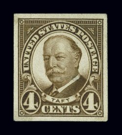 1408 P 685P2 image#685P2, 4c Brown, small die proof on wove paper, stamp size proof with nice even margins, excellent impression of a die proof rather than a plate proof, very fine; Scott does not list a small die proof on wove or even a large die on wove; whether it was issued as a small die or was cut down from a large die is not known, undoubtedly rare; C.A. Huston, designer; John Eissler, vignette engraver; 1989 PF certificate. (Image) Est. 400-500