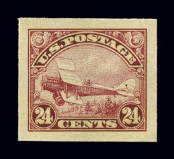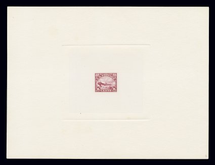 1430 P C6P1 image#C6P1, 24c Carmine, large die proof on India, die sunk on card measuring 111x101mm showing full die sinkage, a proof from the Eissler collection that are characterized by having the original blue control number removed and a black five-digit number applied, quite fresh and attractive with deep color, very fine; C.A. Huston, designer; John Eissler, vignette engraver; control number 70113. ex-Eissler. (Image) $4,750.00