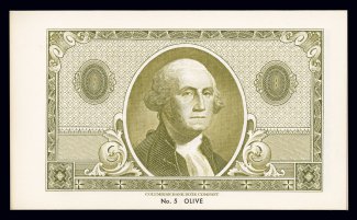 1505 E imageColumbian Bank Note Co. color chart, small attractive simulated leather bound book, the title page reading "Specimen/Border Colors/Steel Engraved/Securities", this book contains 23 pages in different colors with an engraving showing a fancy security border and a central vignette of the head of George Washington, very similar to Turner Essay 122 vignette, this was a portrait that was used on many revenue stamps, both the book and the engravings are in exceptional condition, extremely fine. (Image) Est. 500-750