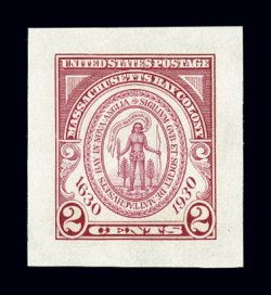 1127 P 682P2 image#682P2, 2c Massachusetts Bay Colony, small die proof on wove paper; measuring 25x28mm, pristine and very attractive with nice balanced margins, extremely fine; an exceedingly rare proof; C.A. Huston & A.R. Meissner, designers; L.S. Schofield, vignette engraver. (Image) $750.00