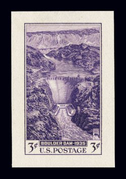 1176 P 774P2 image#774P2, 3c Boulder Dam, small die proof on wove paper, measuring 28x43mm, immaculate with intense deep color, extremely fine and attractive; a rare proof; V.S. McCloskey, designer; Carl T. Arlt, vignette engraver. (Image) $650.00