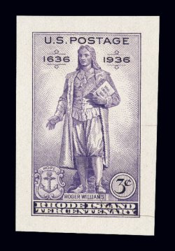1178 P 777P2 image#777P2, 3c Rhode Island Tercentenary, small die proof on wove paper, measuring 27x42mm, a fresh and attractive proof, extremely fine and rare; A.R. Meissner, designer; Carl T. Arlt, vignette engraver. (Image) $650.00